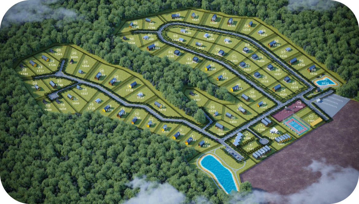 Поселок на 73 просторных участка с развитой внутренней инфраструктурой. Все готово для комфортной жизни.